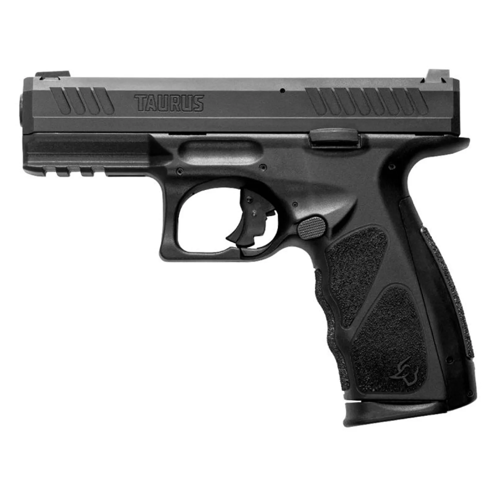 A Pistola Taurus TS9 é um armamento de alta performance, reconhecido internacionalmente por sua robustez e confiabilidade em operações críticas. Desenvolvida originalmente para o mercado tático e de defesa (Tactical Service), esta pistola de percussor lançado (striker fire) foi submetida e aprovada em rigorosos protocolos de testes da OTAN, consolidando-se como a escolha de diversas unidades de forças especiais e órgãos de segurança pública. Seu design moderno prioriza a prontidão de uso, apresentando um perfil sem cantos vivos que facilita o saque rápido e evita o engate em vestimentas. Construída sobre uma armação de polímero de alta resistência, a TS9 conta com um cano de 102 mm (4 polegadas) produzido através de martelamento a frio, o que assegura precisão excepcional e durabilidade prolongada. O modelo destaca-se pelo seu sistema de estancamento contra poeira, areia e lodo, permitindo o funcionamento eficiente mesmo sob condições ambientais extremas. Além disso, o trilho Picatinny integrado (MIL-STD-1913) na parte inferior do frame possibilita a fácil acoplagem de acessórios como lanternas táticas e dispositivos laser. A ergonomia é um dos pontos fortes deste modelo, oferecendo quatro tamanhos de backstraps intercambiáveis para ajuste perfeito à empunhadura do operador. Os controles são ambidestros, incluindo o retém do carregador e o retém do ferrolho, tornando-a versátil para atiradores destros e canhotos. O sistema de segurança é multifacetado, englobando a trava de gatilho (Dual Trigger Safety - DTS), trava do percussor e indicador visual e tátil de cartucho na câmara.